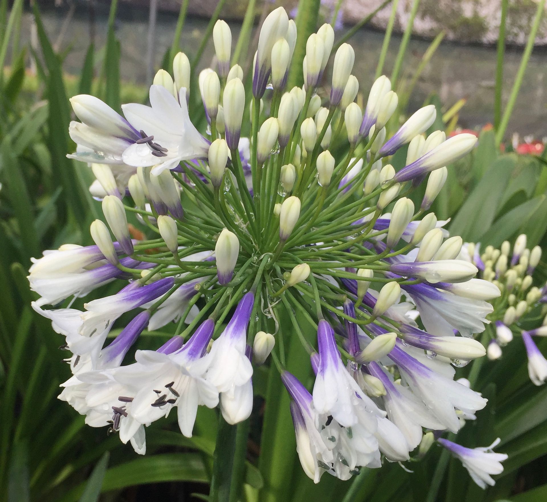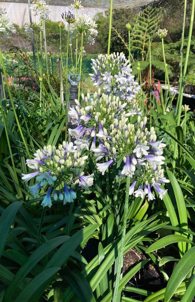 Flower height to about 0.75 metres with a leaf length of about 40cm meters and a plant width of about 45cm but over time Catherine™ can clump to about 1m wide at about 4 years of age. The picture below shows how compact Catherine™ both in foliage and height compared to the surrounding larger agapanthus with many with flower umbels above 1m in height.
